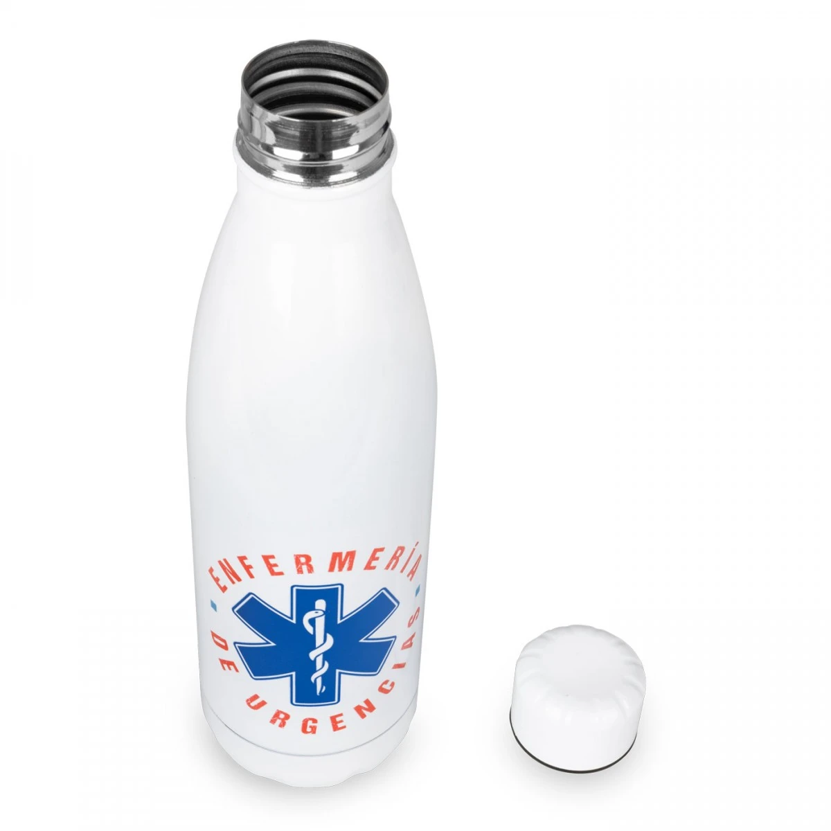 Lleva contigo un símbolo de dedicación y cuidado con esta práctica y resistente botella de acero inoxidable, diseñada pensando en las necesidades de los profesionales de urgencias.