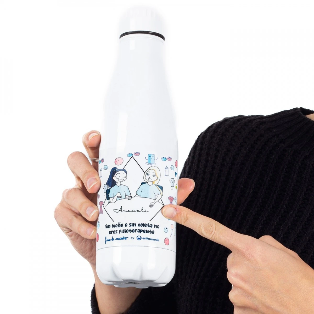 Nuestro nuevo producto para fisioterapeutas es una botella de acero inoxidable especialmente diseñada para que los profesionales puedan mantenerse hidratados durante su jornada laboral.