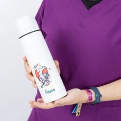 Esta botella de agua de acero inoxidable es el accesorio perfecto para llevar en el trabajo, el gimnasio o donde quiera mantenerse hidratado.