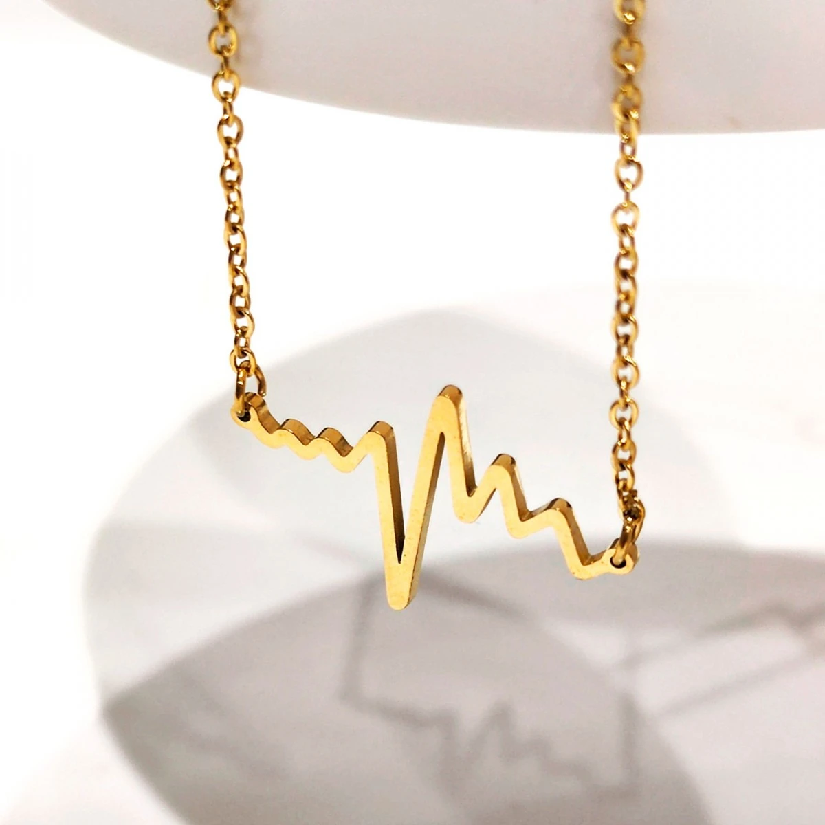 Con el colgante en forma de latido de corazón en acabado oro lucirás un precioso collar elegante y minimalista.