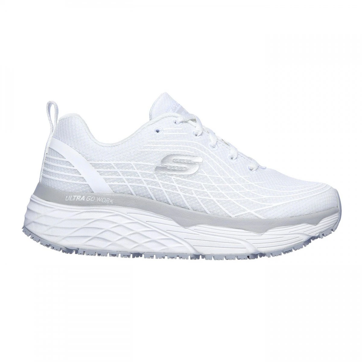 Disfruta de la máxima comodidad con la seguridad en la que puedes confiar del modelo Skechers Work Relaxed Fit®: Skechers Max Cushioning Elite™ SR. Modelo de trabajo con parte superior de resistente malla de knit ligera y de material sintético con cordones elásticos en la parte delantera, plantilla acolchada SKECHERS Air Cooled Memory Foam® con amortiguación ligera ULTRA GO WORK y suela antideslizante.