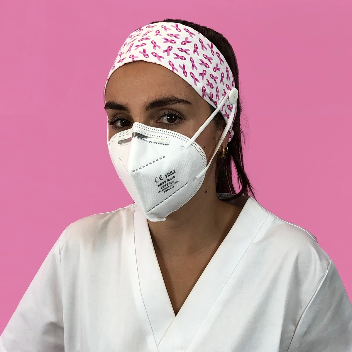 Mira que diadema más bonita con botón para llevar la mascarilla y dejar a tus orejas descansar…
