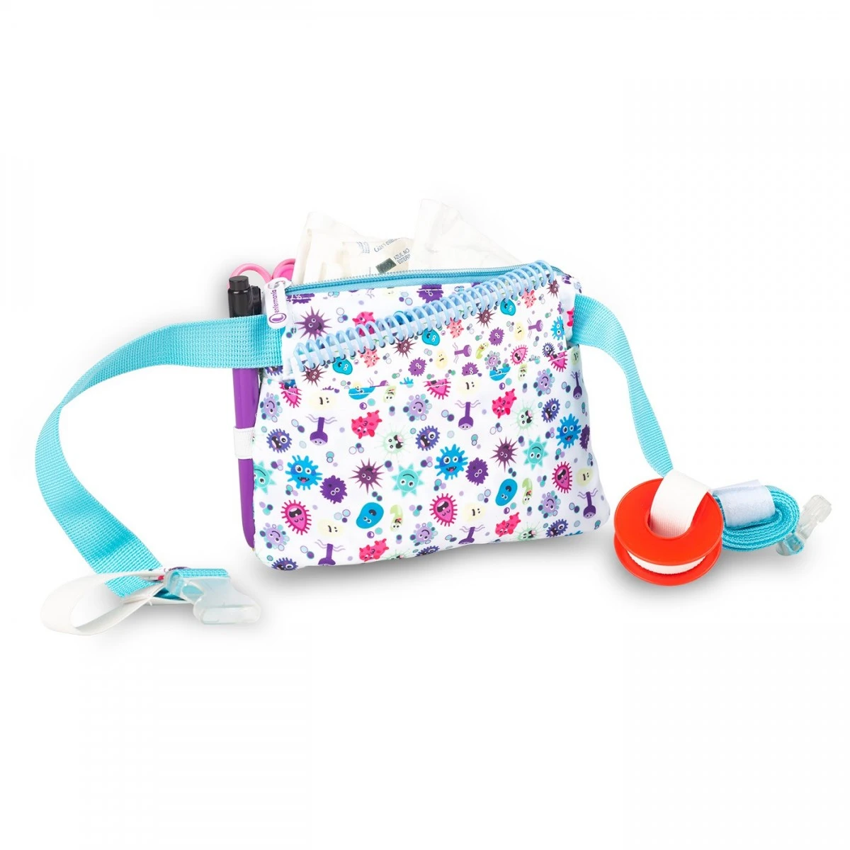 Con las medidas perfectas para que se adapte a tu cuerpo y a tu uniforme y no te moleste, y un cinturón adaptable, consta de dos bolsillos con cremallera, dos sin cremallera y un panel con 4 gomas y con 3 bolsillitos de colores, donde puedes guardar todas tus cosas, así como un panel de plástico frontal para poder aprovechar todo el espacio posible. Vamos, que puedes meterlo TO-DO: trío de tijeras, libreta, rompeampollas, usb, bolígrafo, pulsioxÍmetro, torniquete…